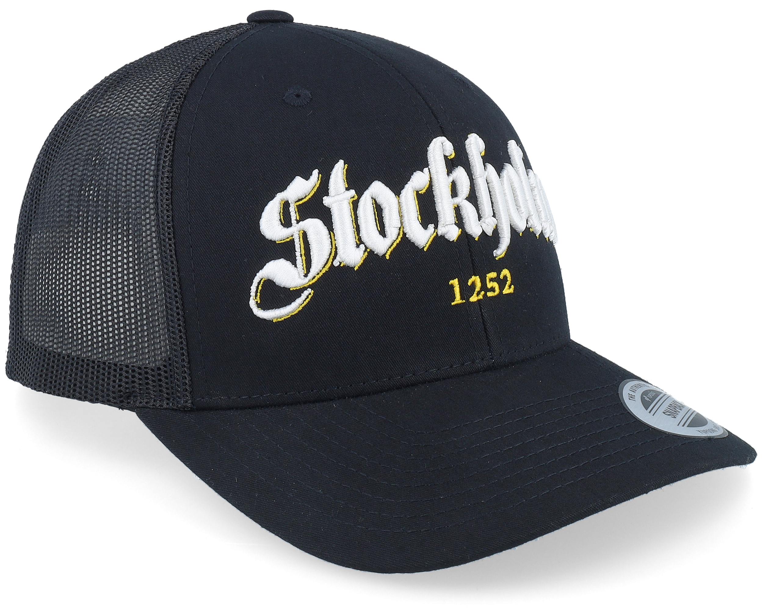 3d Stockholm White Script Black Trucker